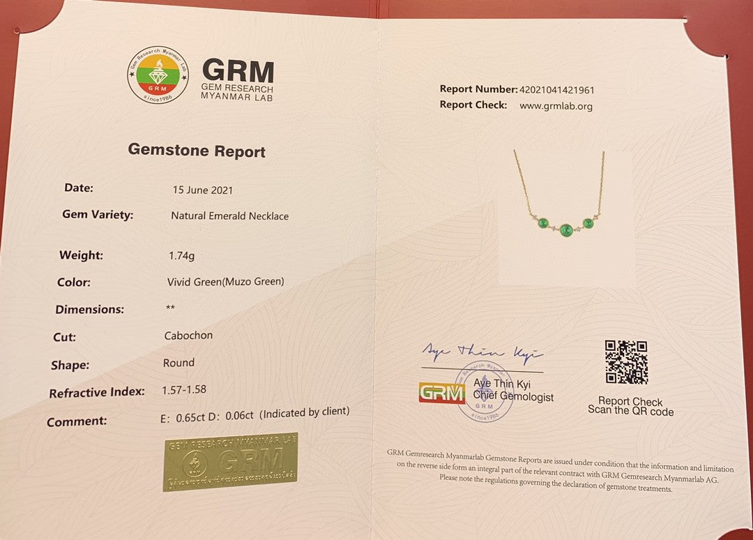 Colar de diamante de esmeralda natural de ouro 18K feminino au750 pingente de diamante de ouro pedra principal 65 distribuição certificado GRM